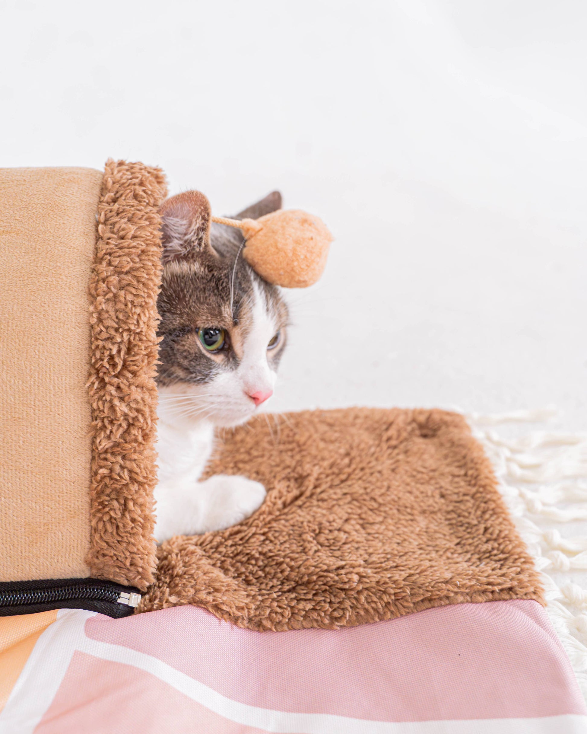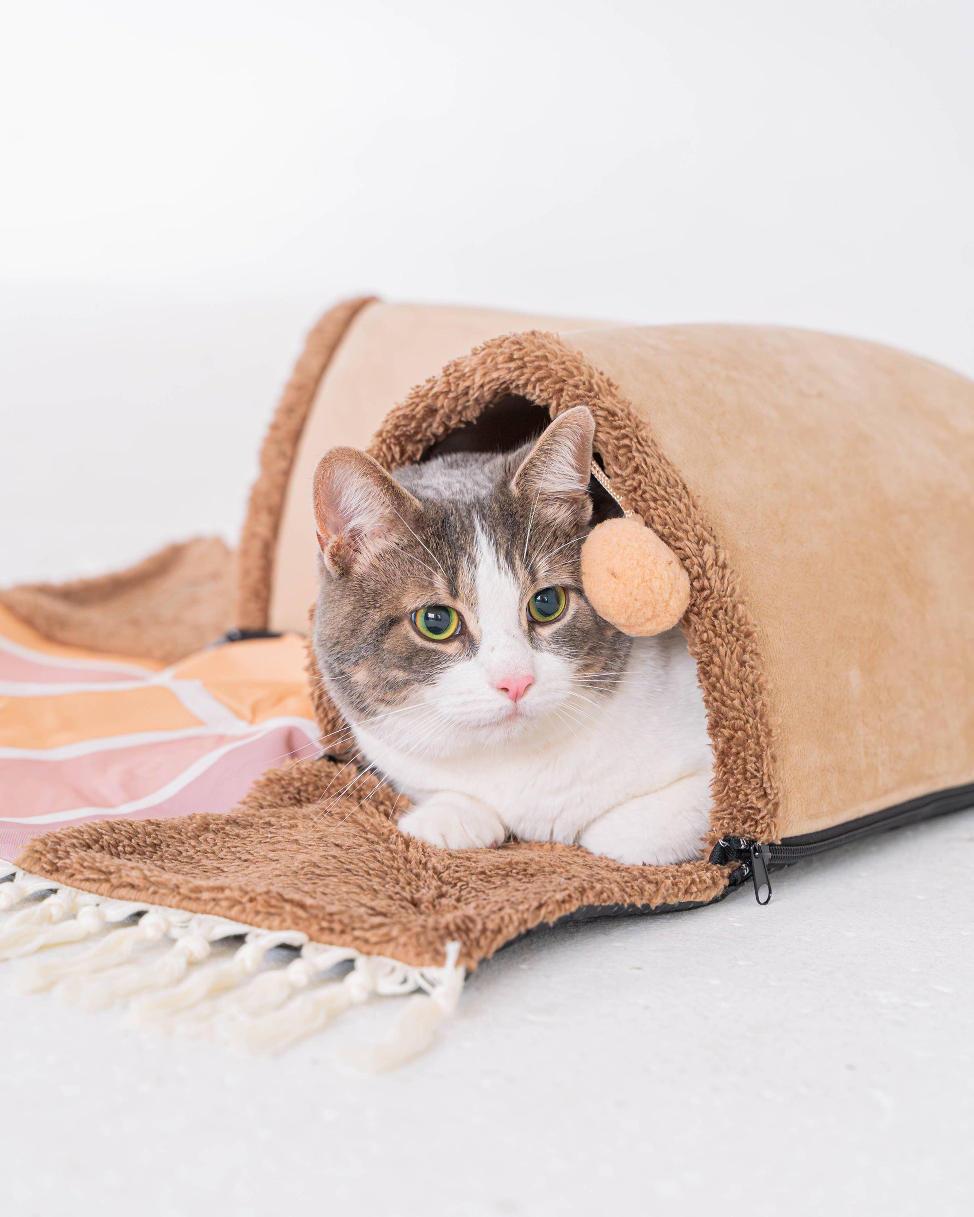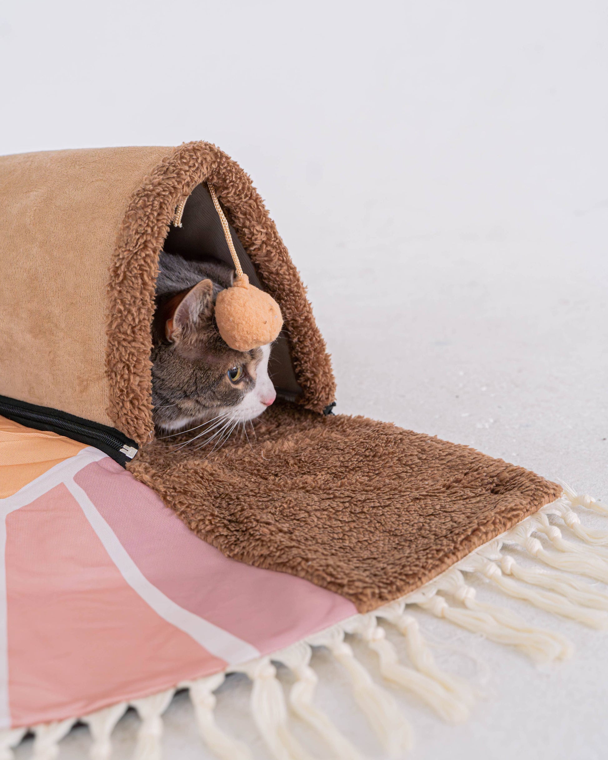 Offrez à votre chat un refuge douillet et ludique 🌫️ La Playhouse est un espace tout-en-un durable et moelleux + le Pompon qui va bien