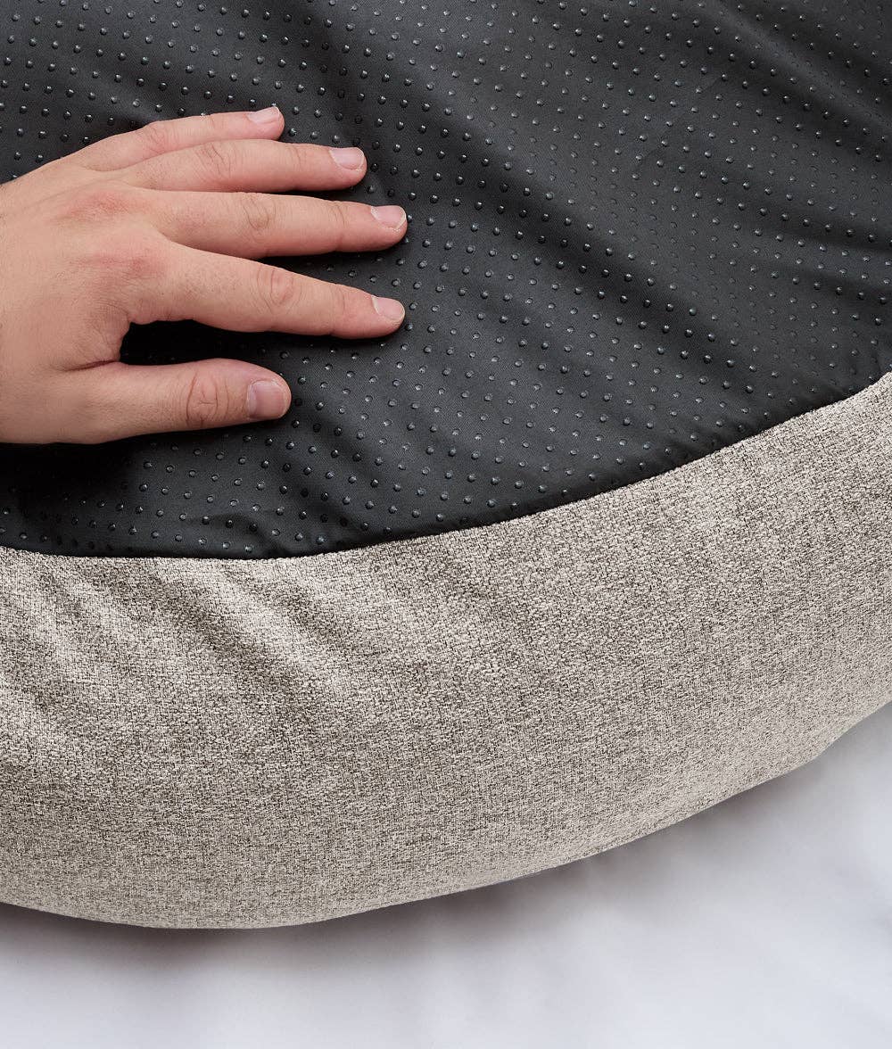 Lit pour chien déhoussable et lavable avec un tissu au toucher doux, fabriqué en Europe. Le rembourrage est en mousse recyclée. Le rembourrage peut être retiré manuellement pour ajuster la hauteur pour tous types de chiens.